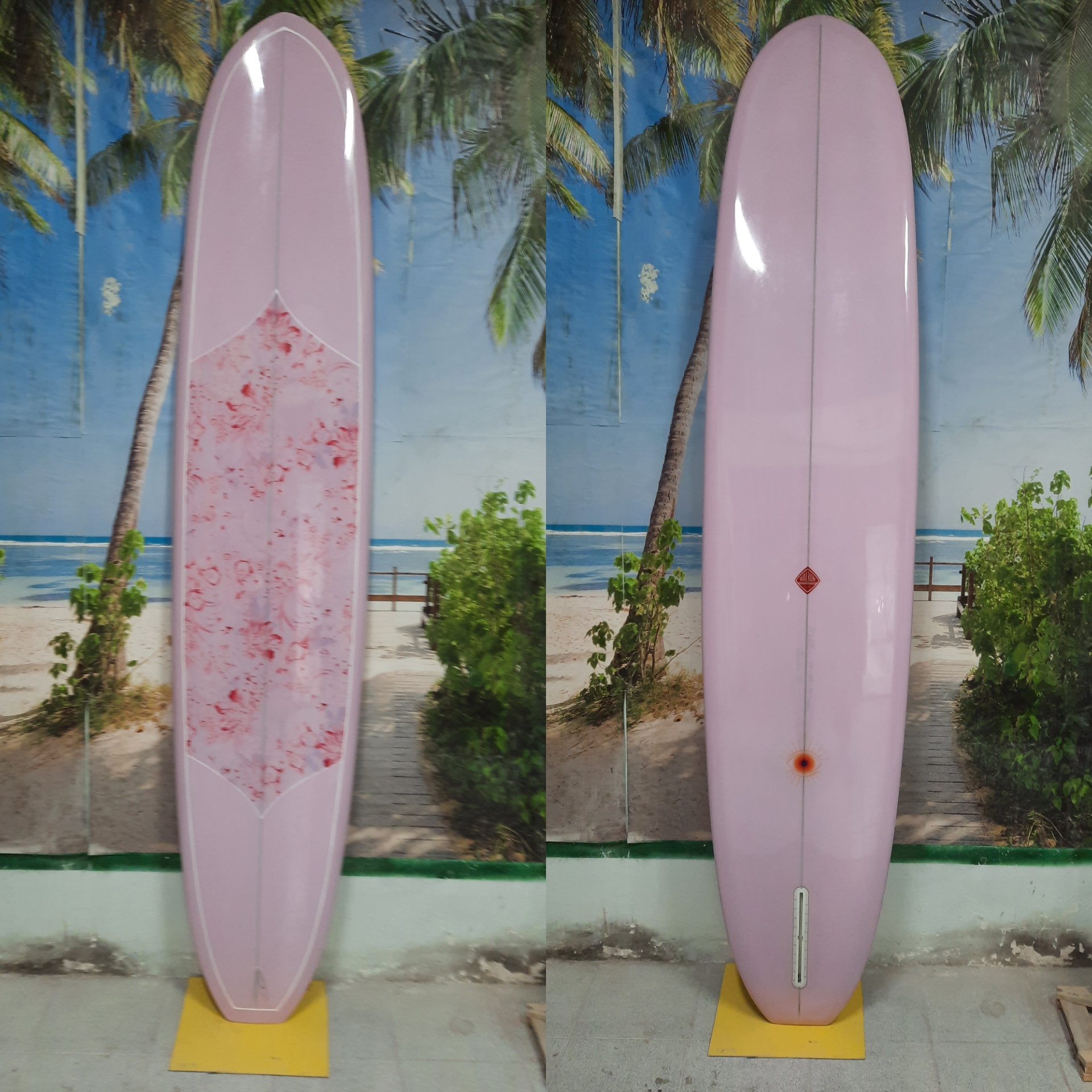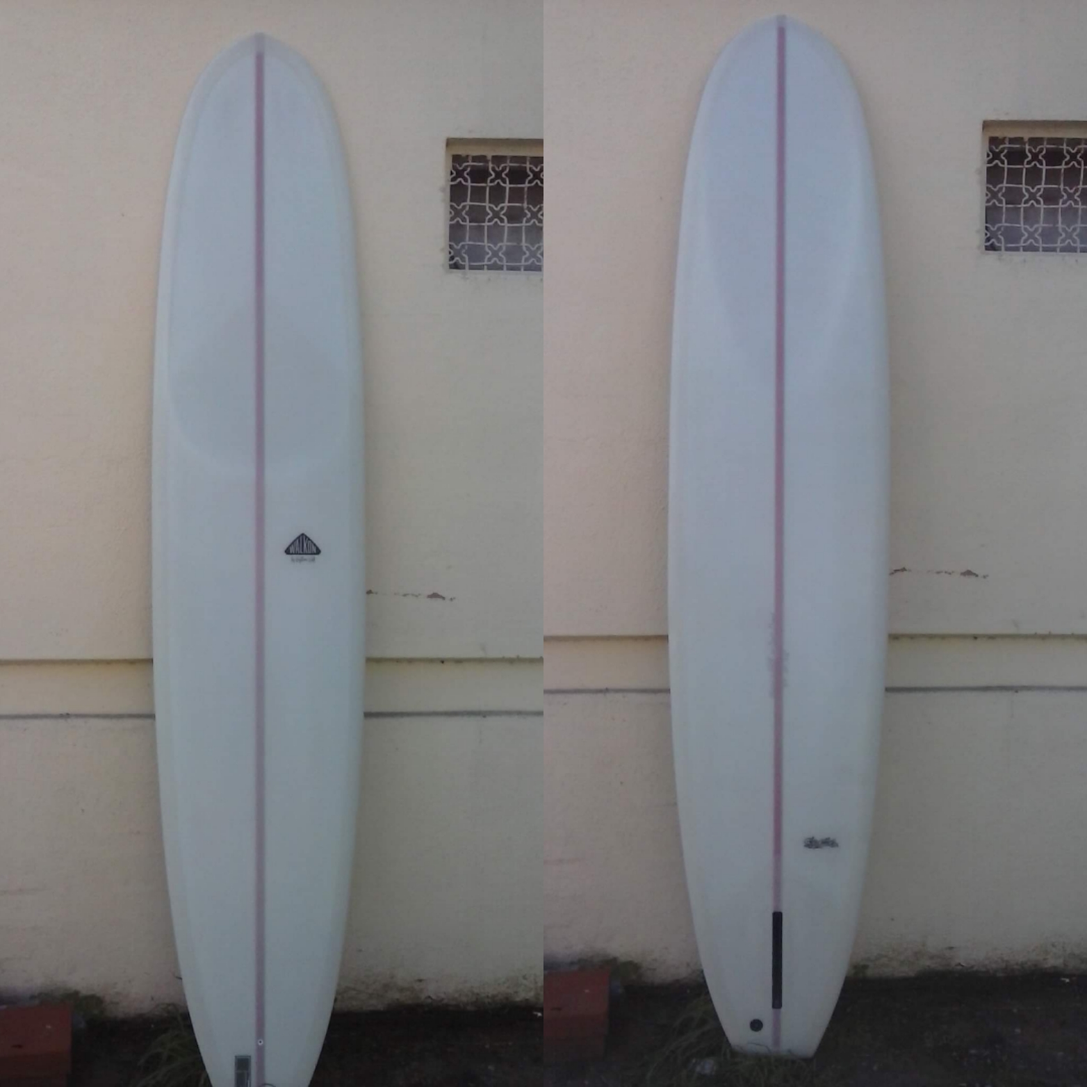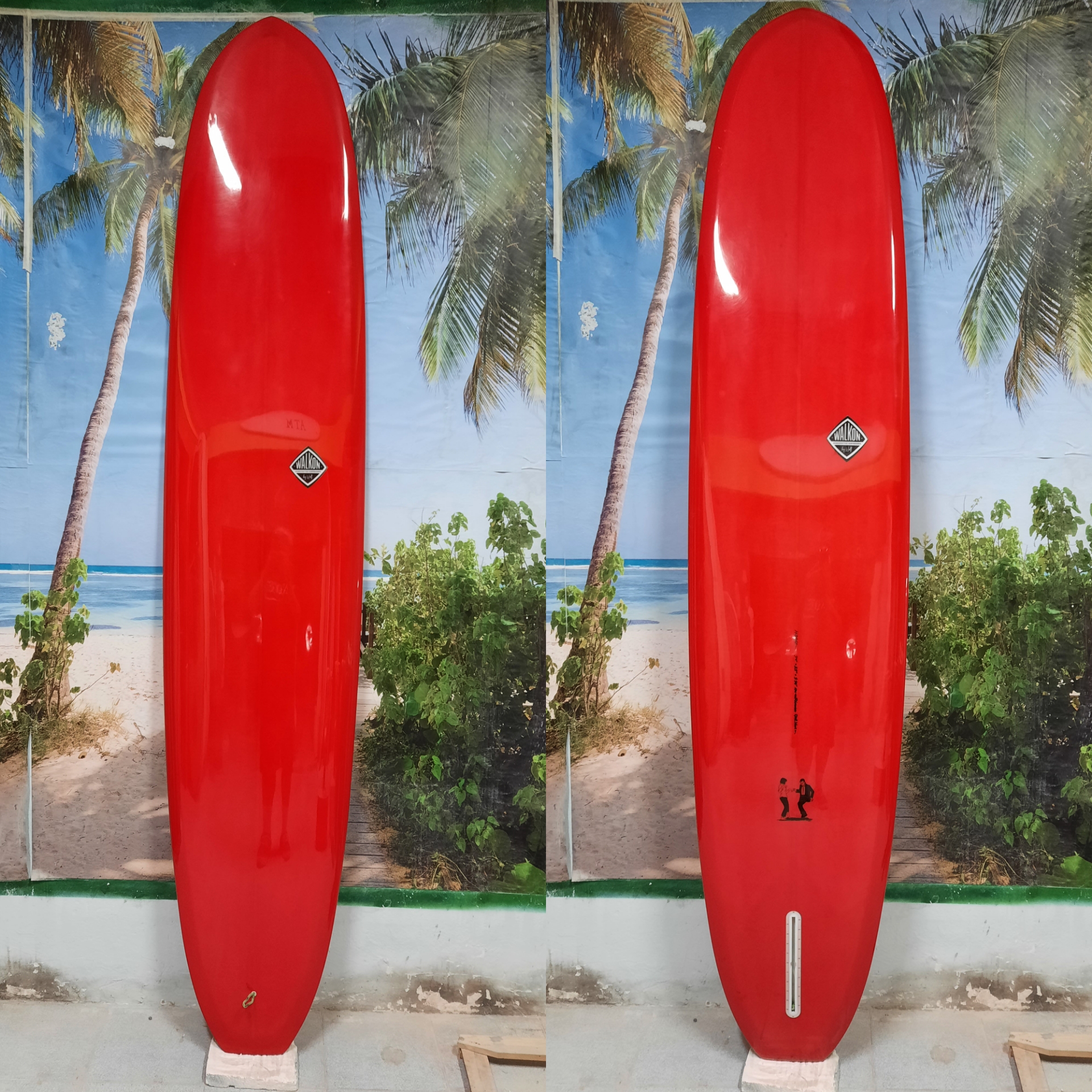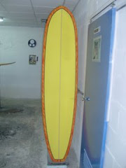 This is our classic model. Very functional for the surfer who loves longboarding and need to get a better performance. Easy paddling, stable when take-off, fast and easy turns. This model goes from 9`0" to 9`8" Length, 22" to 23" Width, 2 7/8" to 3 1/2" Thickness. Bottom: Concave nose to flat to extended vee to smoth kicked up tail. Tail style can be rounded pin, rounded squash, rounded square and square. 50/50 pinched middle rails for nose riding, and 60/40 up turned railed V tail. Recommended fins: from 9. 75" to 10".